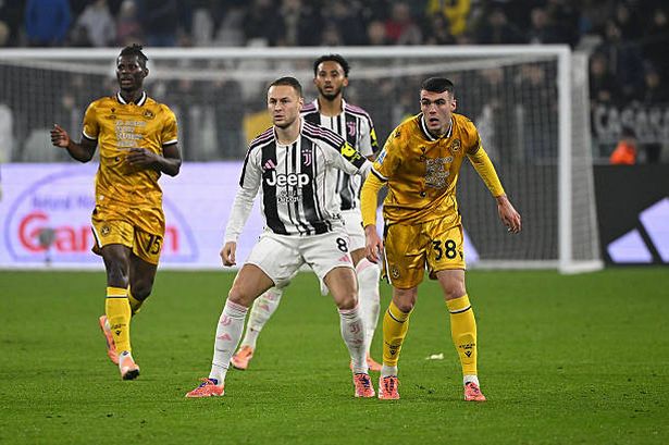 TURIN, ITALY – OCTOBER 29: Teun Koopmeiners of Juventus competes for the ball with Lennon Miller of Udinese during the Serie A match between Juventus FC and Udinese Calcio at Allianz Stadium on October 29, 2025 in Turin, Italy. (Photo by Filippo Alfero – Juventus FC/Juventus FC via Getty Images)(Image: Filippo Alfero – Juventus FC/Juventus FC via Getty Images)