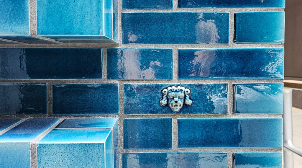 The heritage of the area’s former pubs has however been recorded in the blue tiles with small printer’s marks and pub signs embossed into some of them. Helpfully, a small stone plaque on the floor also explains their meaning.