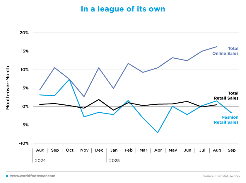 The Spanish fashion retail sector is experiencing contradictory cycles. Sales for physical textile and footwear retailers plummeted by 1.8% in the first eight months of 2025, exacerbated by an unusual deflationary environment. E-commerce retail, however, seems to be in a league of its own. Despite negative trends, retailers appear to be betting on a recovery, as evidenced by a 5.4% surge in fashion imports up to August, as well as an unusual peak in shoe imports in July. This suggests that retailers are now focusing on the final quarter of the year, hoping for a return of consumer spending at key events such as Black Friday and Christmas