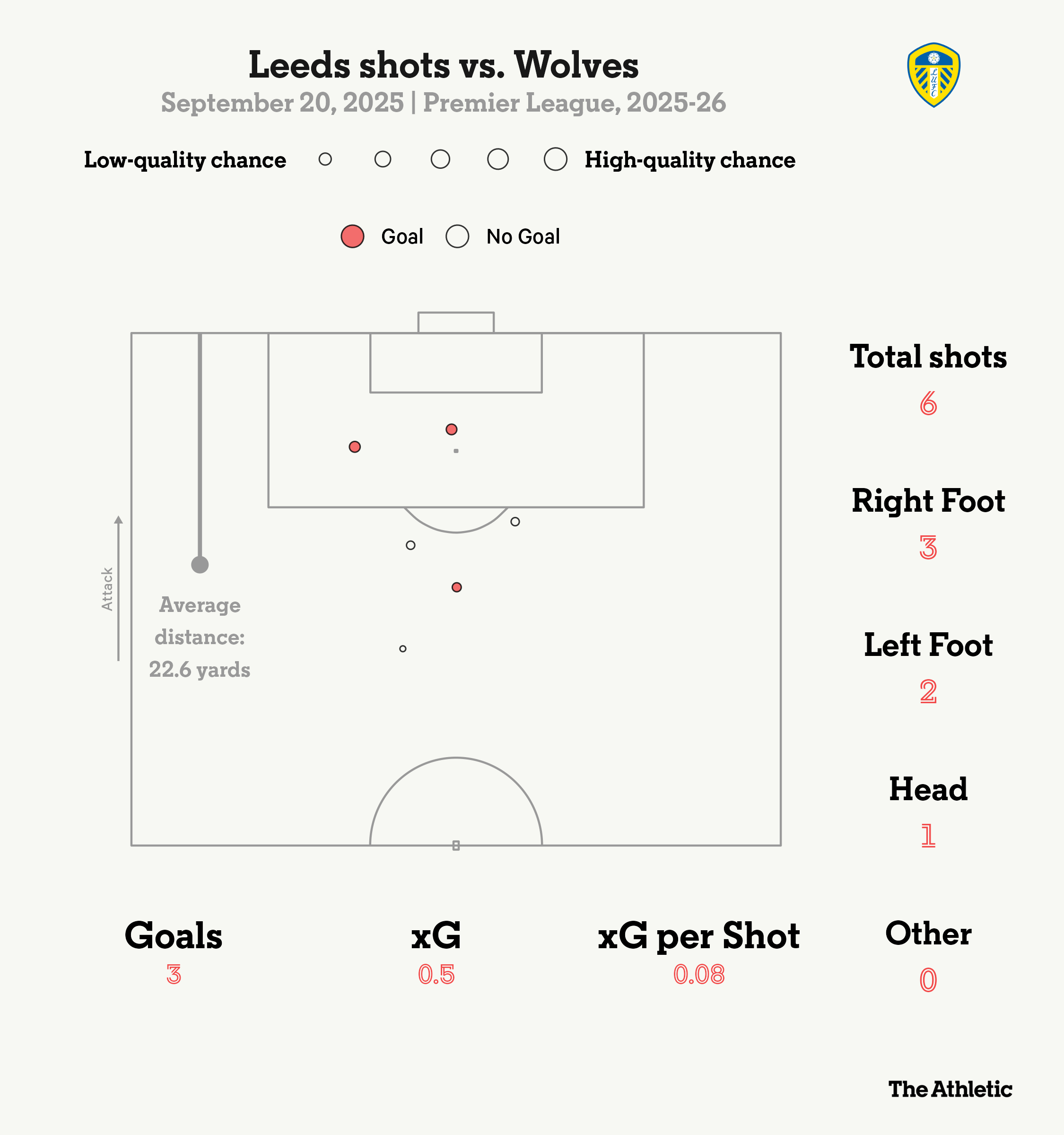 There were just six shots taken against Wolves, but everything seemed to fall for Leeds. Anton Stach’s driven free kick nearly took the net off, Noah Okafor benefited from Stach’s surprise turnover in the Wolves half before squeezing the ball home from a tight angle.