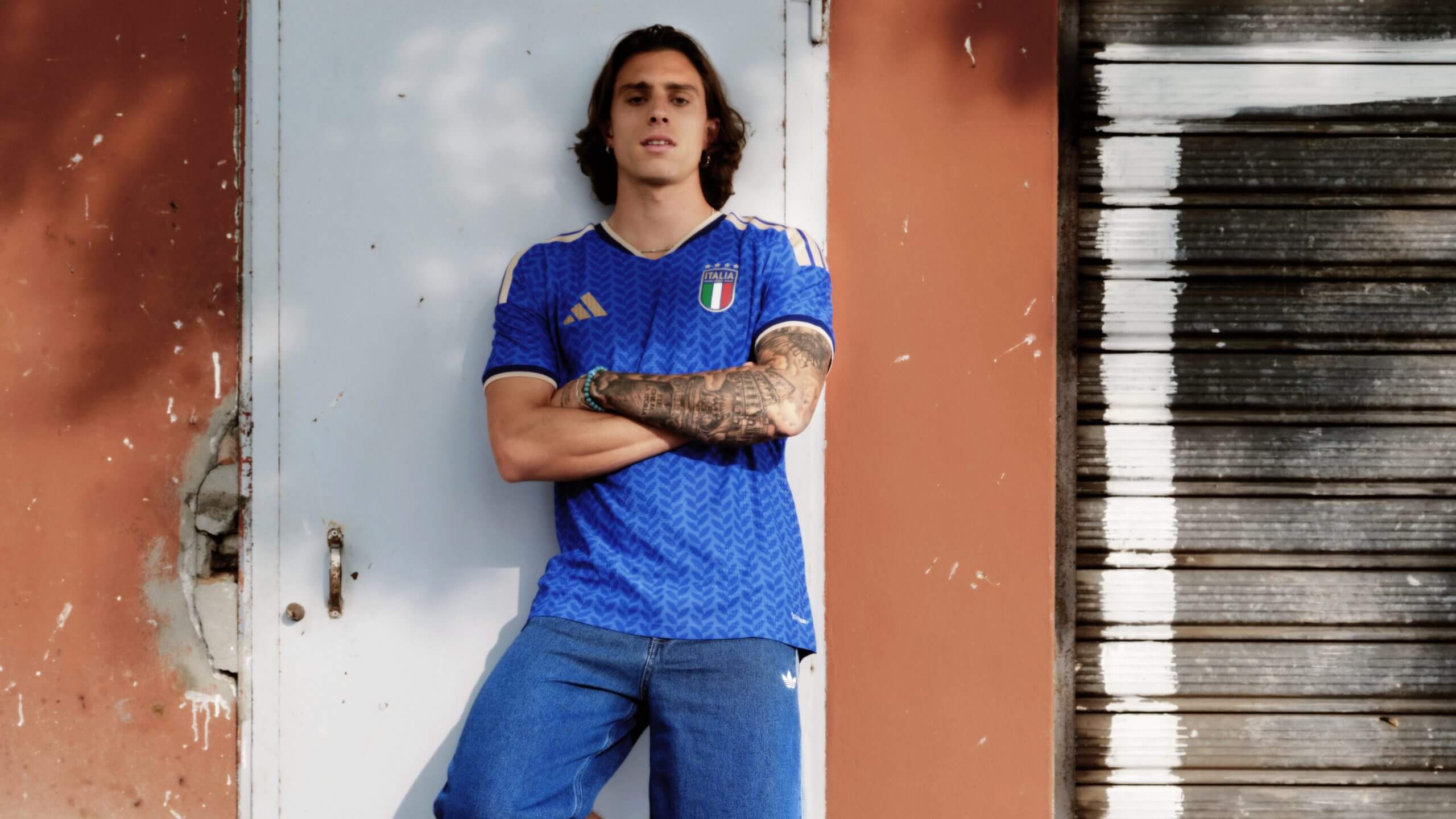 Riccardo Calafiori in the Italy shirt (Adidas)