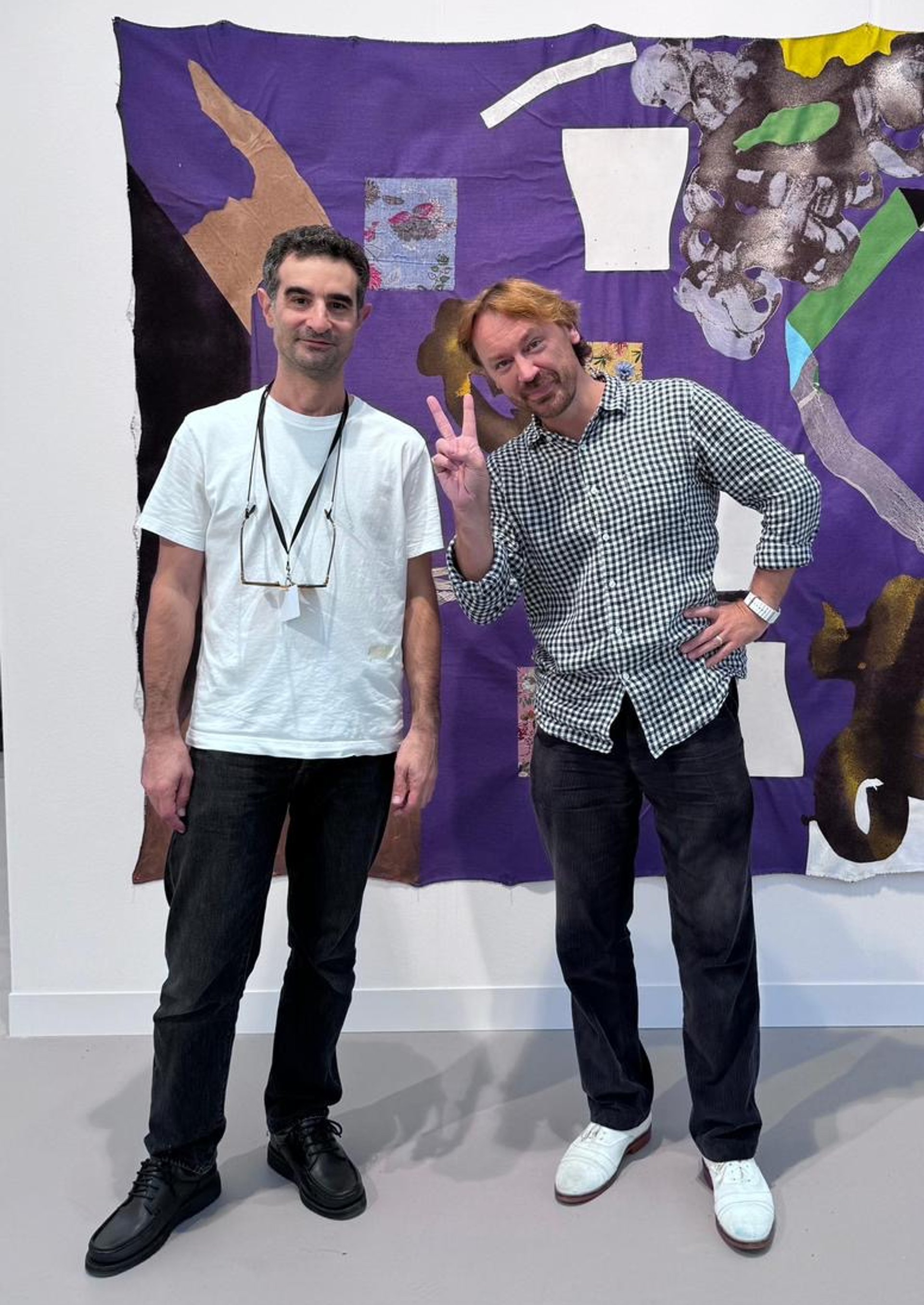 Herald St founders Nicky Verber and Ash L’Ange, in front of a work by Bologna-based artist Francis Offman