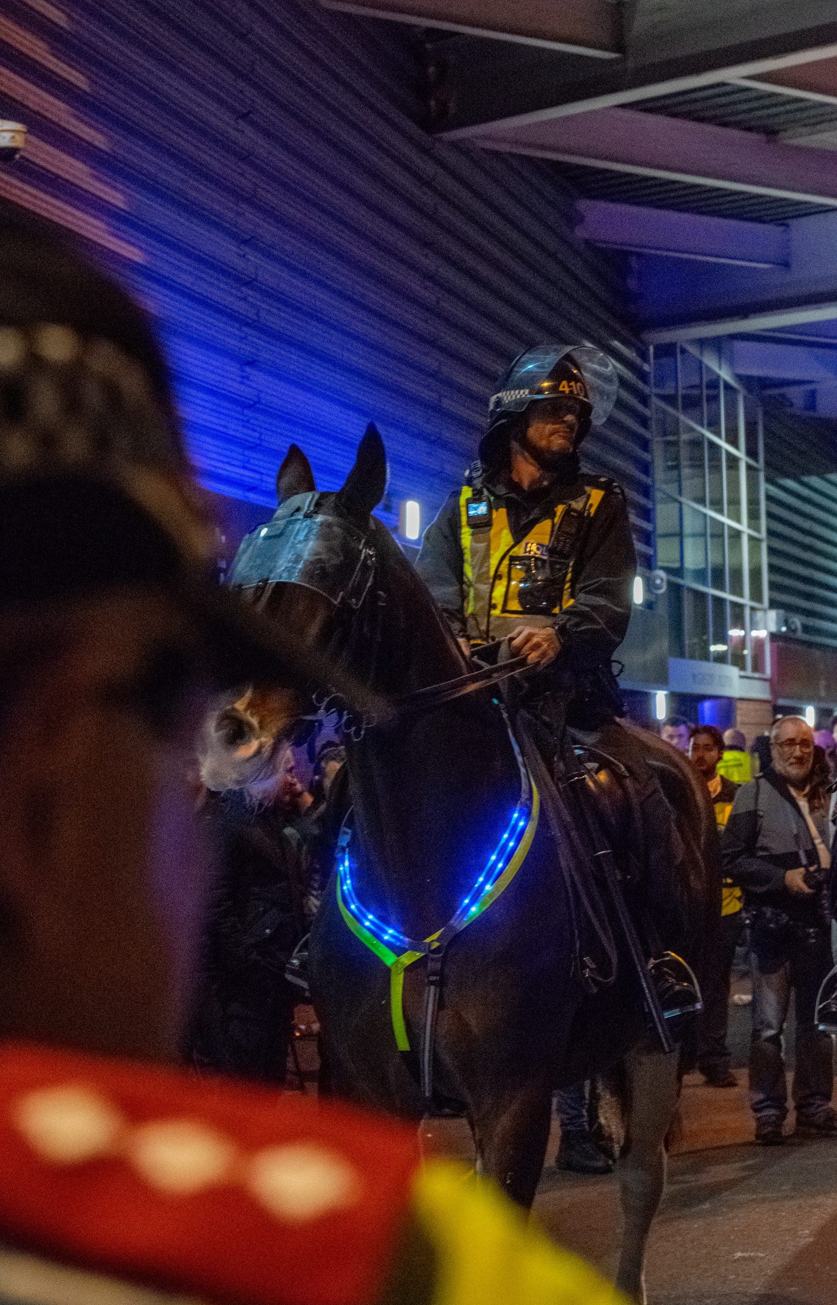 I hang around until full time to see what happens – I’m really interested in how the police plan on stopping the two groups mingling as they make their way towards the station. As the fans start to leave, one comes out, masked, hooded, and makes a beeline for something with intent.