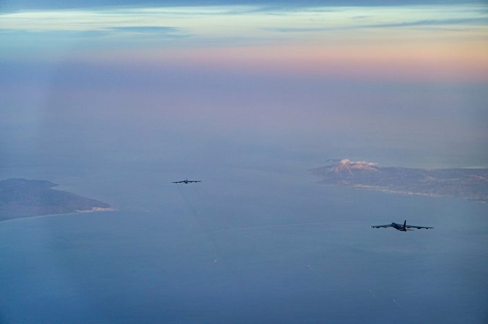 The B-1s were deployed from Dyess Air Force Base, Texas, and have been noted on flight tracking websites flying missions to both the west and east of Japan. Alongside exercising with local Japanese forces, it is very likely the bombers have flown freedom of navigation operations through airspace around the South China Sea to contend with unrecognised sovereignty claims by the People’s Republic of China.