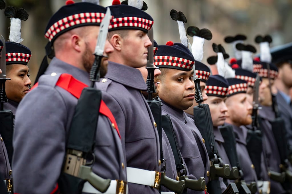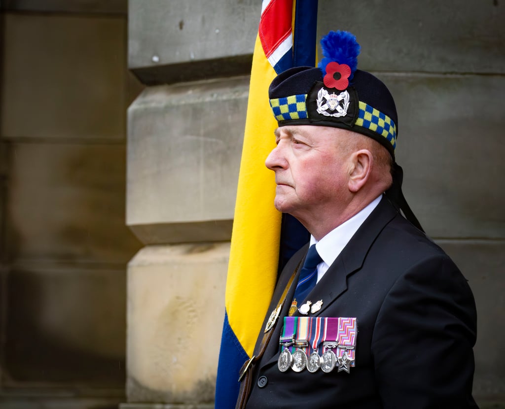 The RAF Central Scotland Pipes and Drums led a parade from Edinburgh Castle to the City Chambers at 10.30am, followed by Royal British Legion Scotland National Standard Bearers, Tri-Service Cadets, The Band of the Royal Regiment of Scotland, veterans’ organisations, and Service detachments from the Royal Navy, Army, and Royal Air Force.