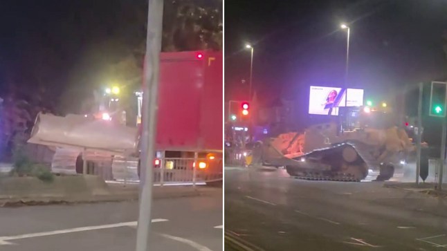 The bulldozer was driven for several hours through the city centre on Saturday evening (Picture: SWNS)