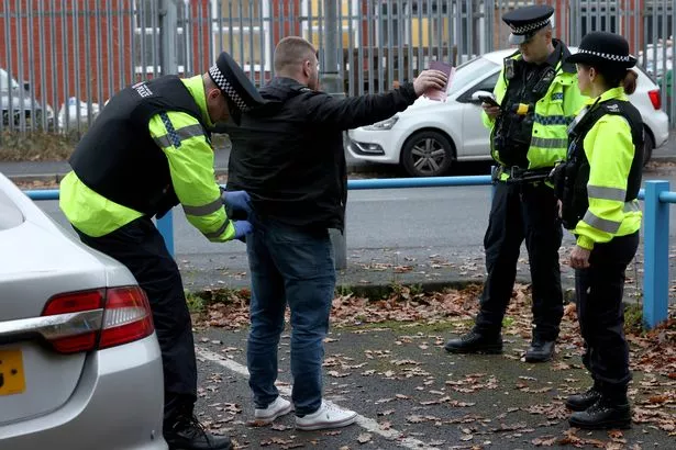 GMP officers checking vehicles and drivers entering HMP Forest Bank(Image: Jason Roberts /Manchester Evening News)
