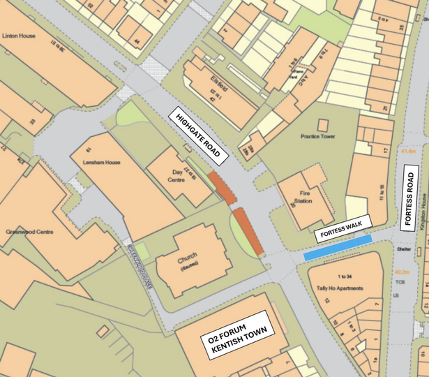 ” A protest by the Palestine Coalition and other groups must take place in the orange area in Highgate Road. Both protests must end by 9.30pm.”