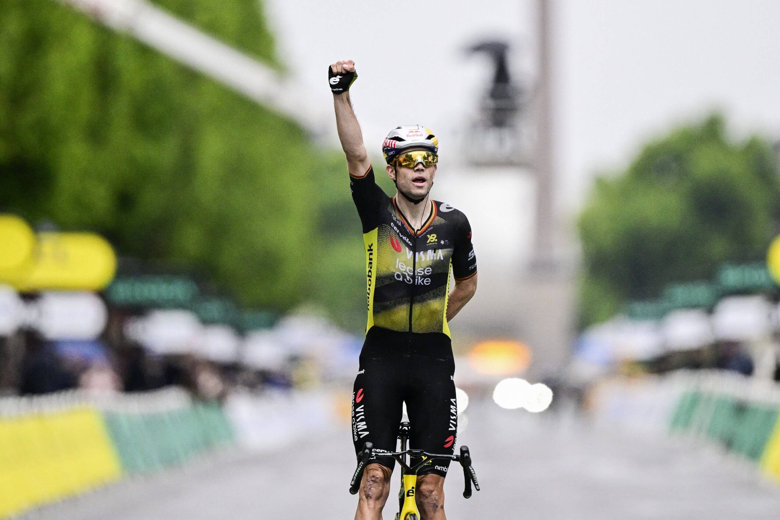 Van Aert celebrates a cathartic victory in the final stage of the 2025 Tour de France (DIRK WAEM/BELGA MAG/AFP via Getty Images)