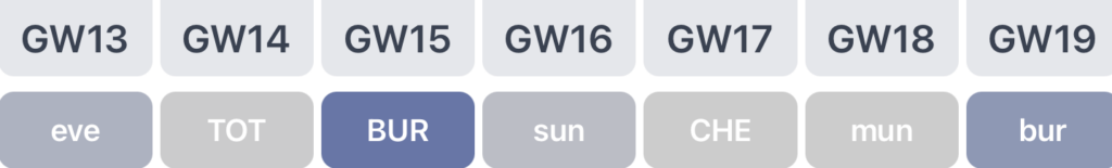 Realistically, then, the only match during this run where you would be truly confident of a clean sheet is the Burnley home match in Gameweek 15: