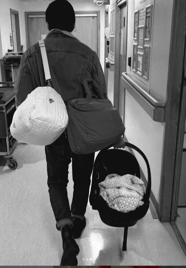 Liz added: “P.S. I had to put the customary partner-with-baby-carrier-walking-out-of-hospital picture at the end – We’ve waited a long time for this.”