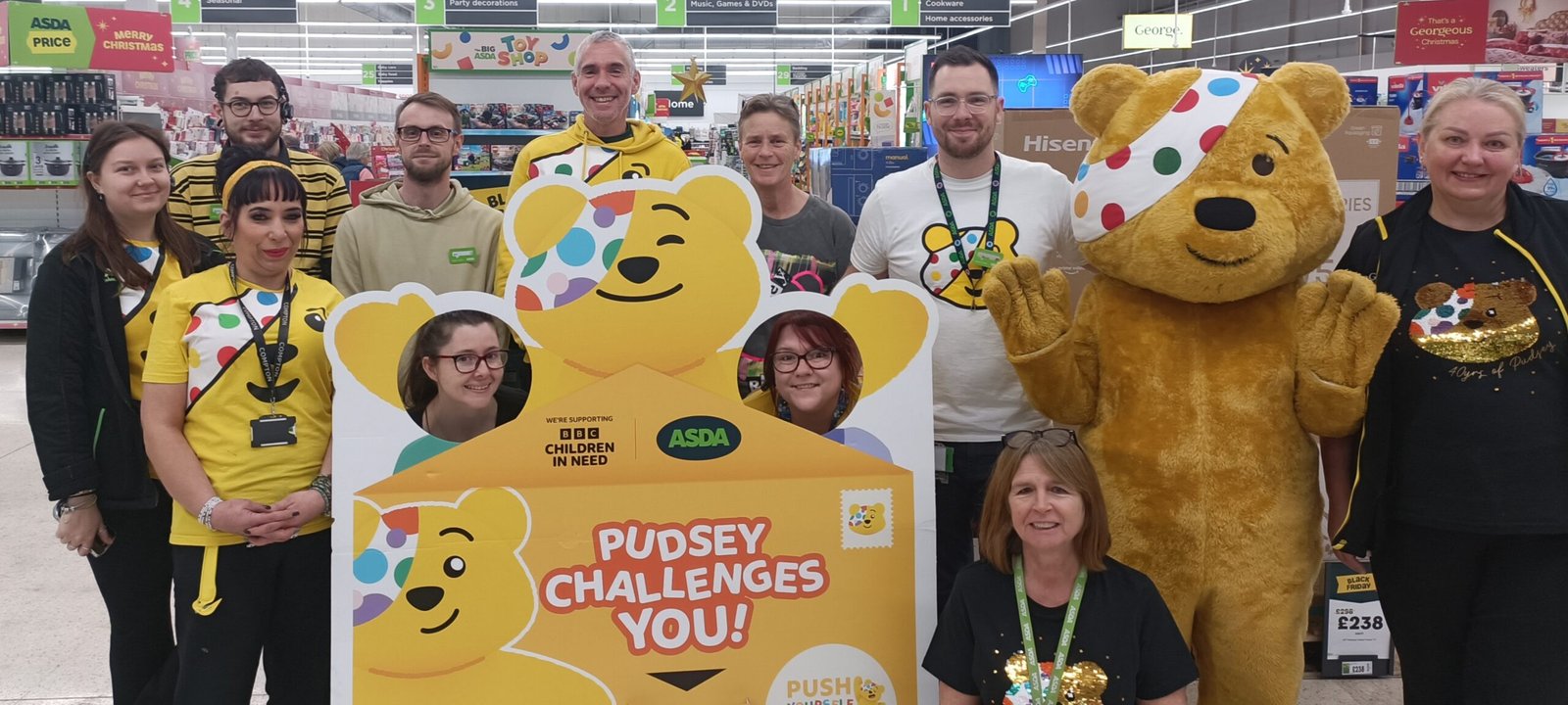 The store’s community champion, Stephen Bromby, escorted Pudsey to thirteen local schools and a youth club. The charity mascot also spent time greeting shoppers at the Lister Way supermarket.