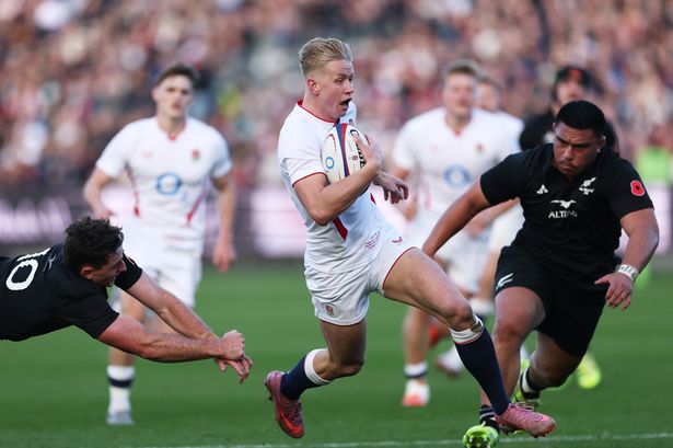 osh Hodge of England A avoids a tackle Josh Jacomb of New Zealand XV. (Photo by Dan Istitene/Getty Images)