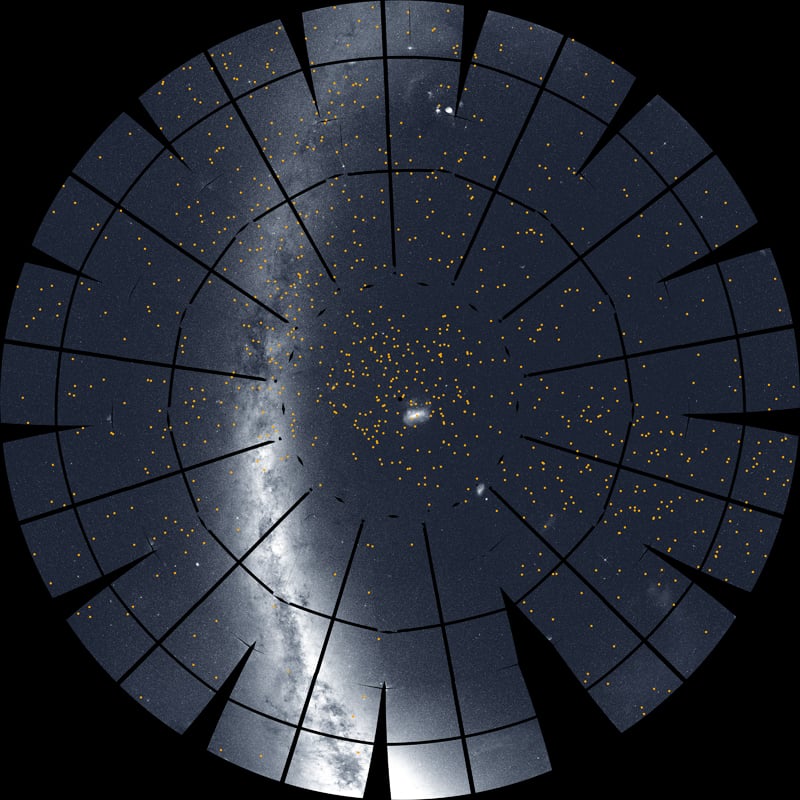 The TESS survey of the southern sky. Credit: NASA/TESS.