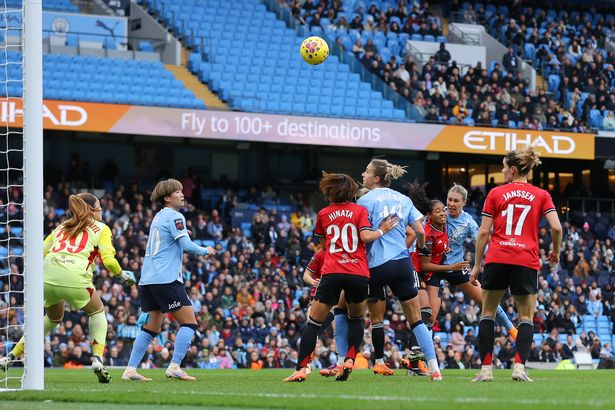 Leah Galton had a half-hearted appeal for a penalty waved away as United searched for an equaliser and City took full control as they doubled their advantage just two minutes before the break. United felt there was a foul in the build-up to the goal but the referee wasn’t interested and Kerstin Casparij delivered for Shaw to prod home.