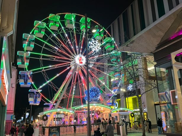 Starting my route at the Moor, I watched as people ascended the stairs for the beloved ‘Big Wheel’ ride that I always associate with Christmas in Sheffield. It was a little empty, but completely understandable given the poor weather and it being the opening night.
