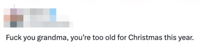 “Fuck you grandma, you’re too old for Christmas this year.”
