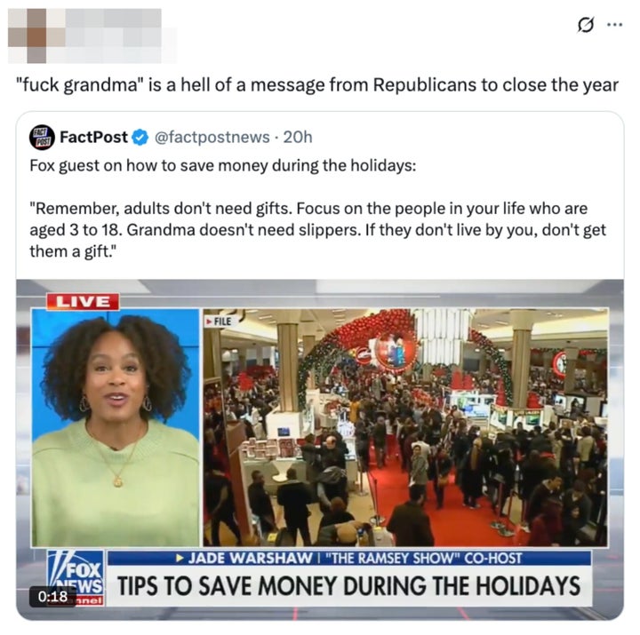 Unsurprisingly, people were pretty taken aback by the suggestion. ”‘fuck grandma’ is a hell of a message from Republicans to close the year.”