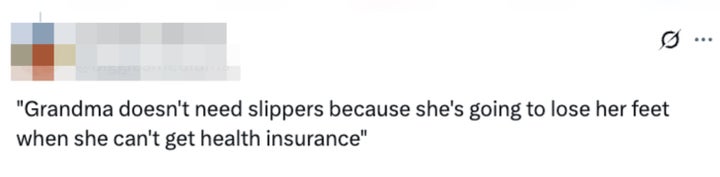 And finally, ”‘Grandma doesn’t need slippers because she’s going to lose her feet when she can’t get health insurance.’”