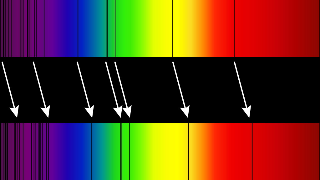 Every element in the Universe has its own unique set of atomic transitions that are allowed, corresponding to a particular set of spectral lines. We can observe these lines in galaxies other than our own, but although the pattern is the same, the lines we observe are systematically shifted relative to the lines we create with atoms on Earth. When the distances are large, it’s safe to estimate that ~100% of the redshift is due to cosmic expansion.