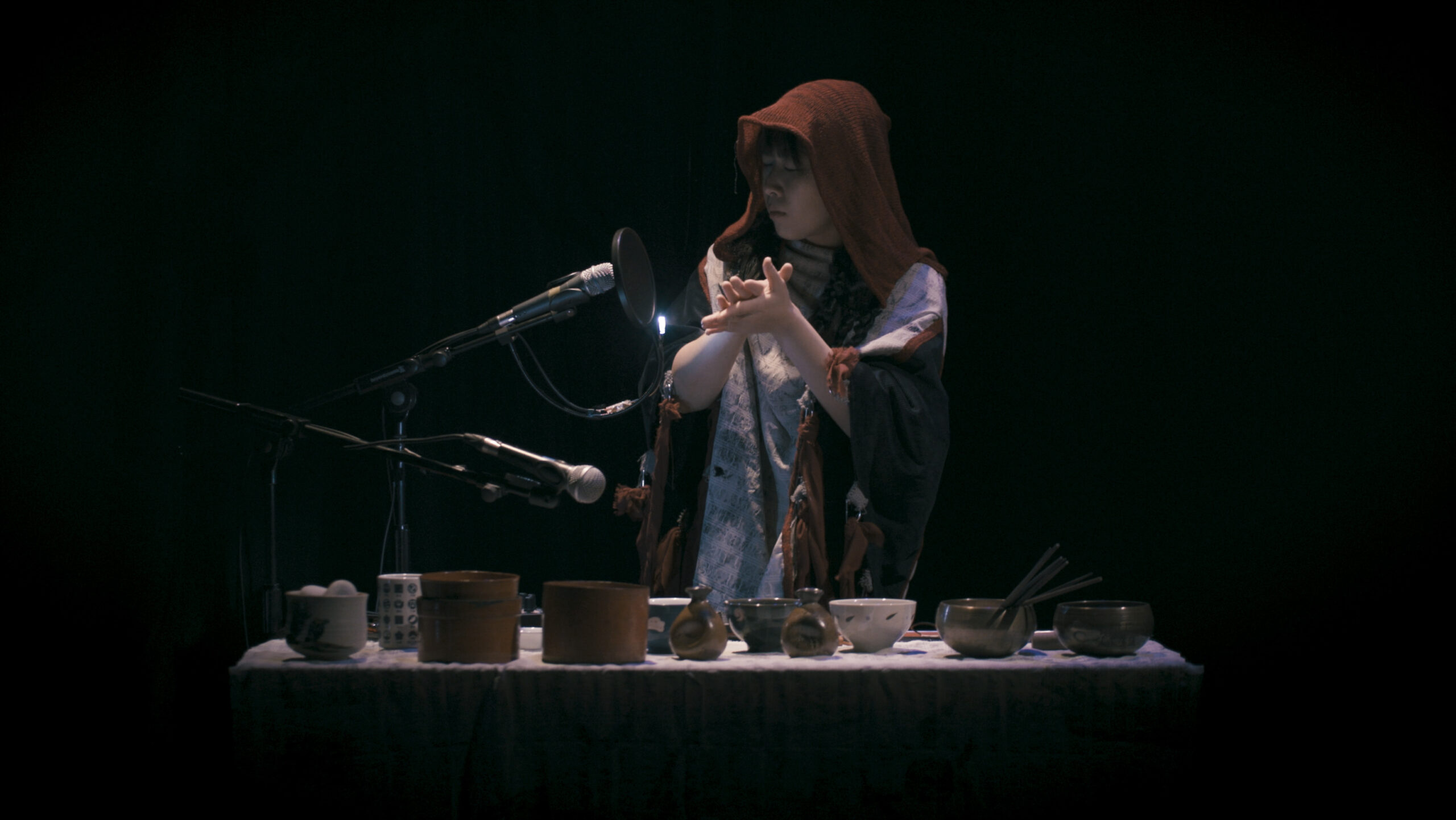 We enter to find the stage already half-consecrated: white cloth, stone, bowls, incense. Front-of-house staff hand out a single sheet outlining the East and Southeast Asian death rituals that shape the work; an invitation, a first offering. Departure, created and performed by movement artist Masumi Saito with composer and musician An-Ting, is not a story so much as a ceremony. With no spoken text, it asks us to sit inside fifty minutes of ritual action and listen with our whole bodies.