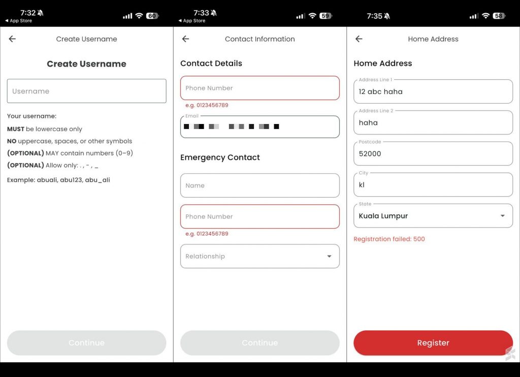 That’s a total of 6 steps required just to be informed that your username is taken! Why didn’t the app check for username availability on the same page itself?