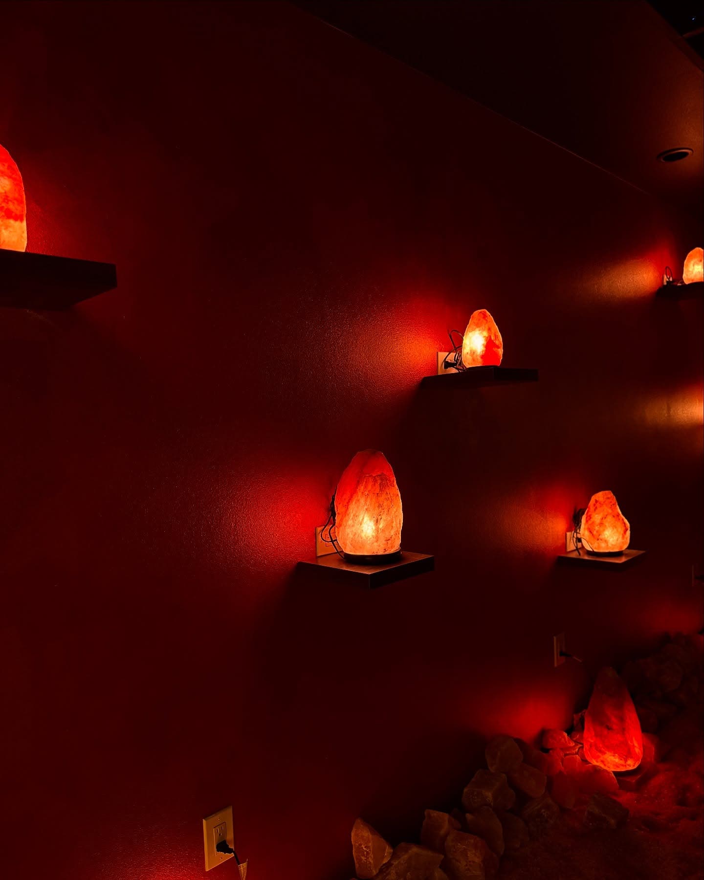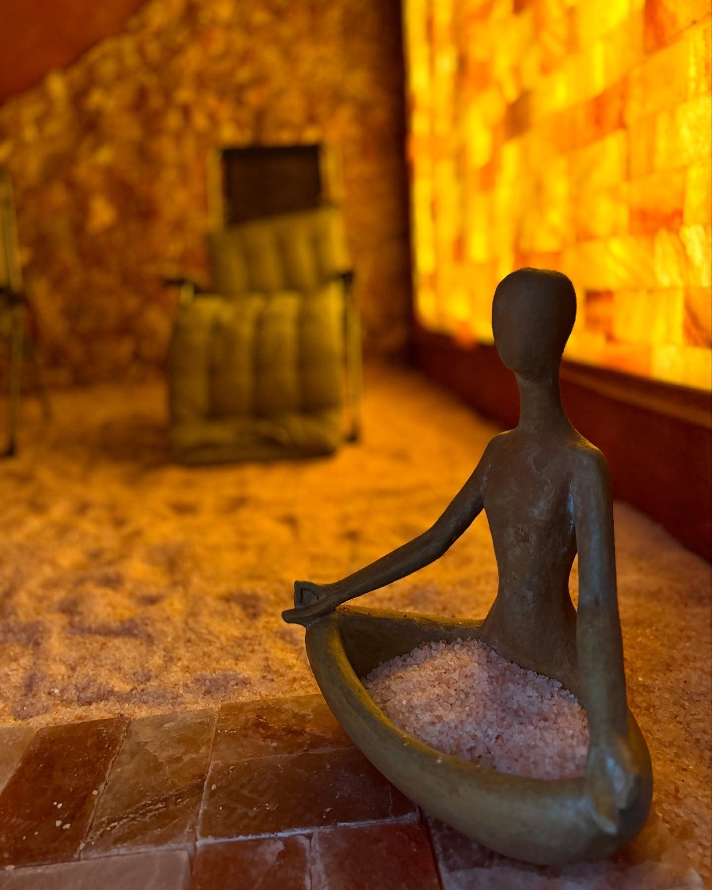 “Inside the two manmade caves, there is loose pink Himalayan salt like sand on the floor, salt bricks and boulders line the walls, and illuminated salt bricks are the light source,” she said. “When you arrive, you sit in a comfortable chair, the air is dry, cool, and filled with microscopic salt particles.”