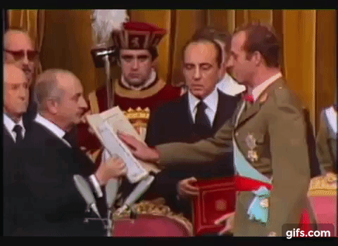 Gentlemen Councilors of the realm and Deputies, I ask for God’s help for us all as I speak from the Cortes to the Spanish people I promise you firmness and prudence. I have confidence that we will fulfill our duties.