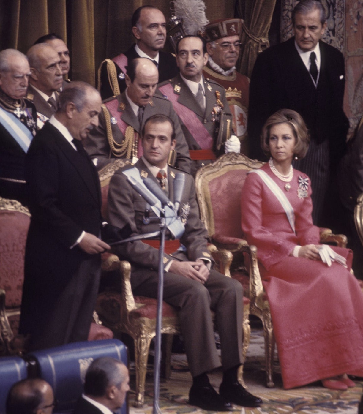 Afterwards, the Royal Family viewed a Parade outside the Cortes Generales, and then the new King and Queen attended the lying-in-state of General Franco.