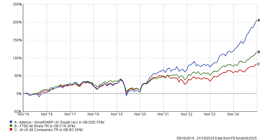 But this has not stopped some UK funds from delivering for investors. As part of an ongoing Trustnet series, we examined which IA UK All Companies funds posted top-quartile returns over one, three, five and 10 years (the standard time frames used by investors).