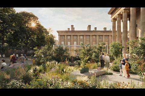 The scheme, which is being supported by a £10.3 million pledge from the Garfield Weston Foundation, will create a richly planted public realm space on the south forecourt and pavilions designed by Studio Weave with garden designer Tom Massey Studio.