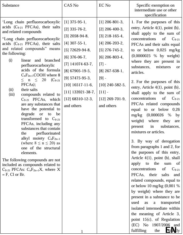 3. Long chain perfluorocarboxylic acids (C9-21 PFCAs), their salts and related compounds