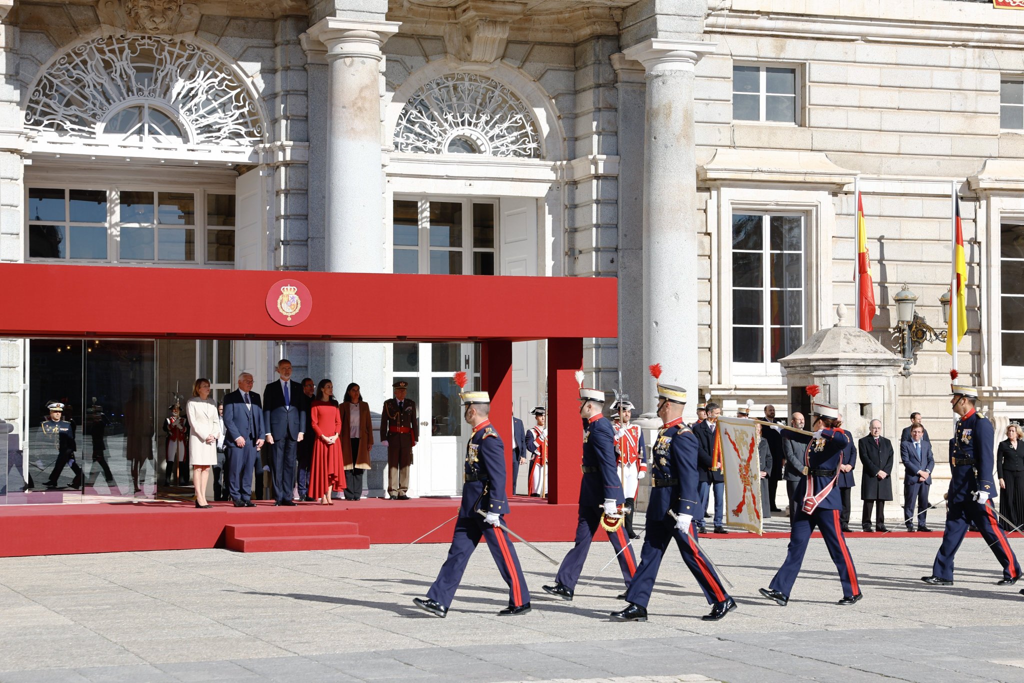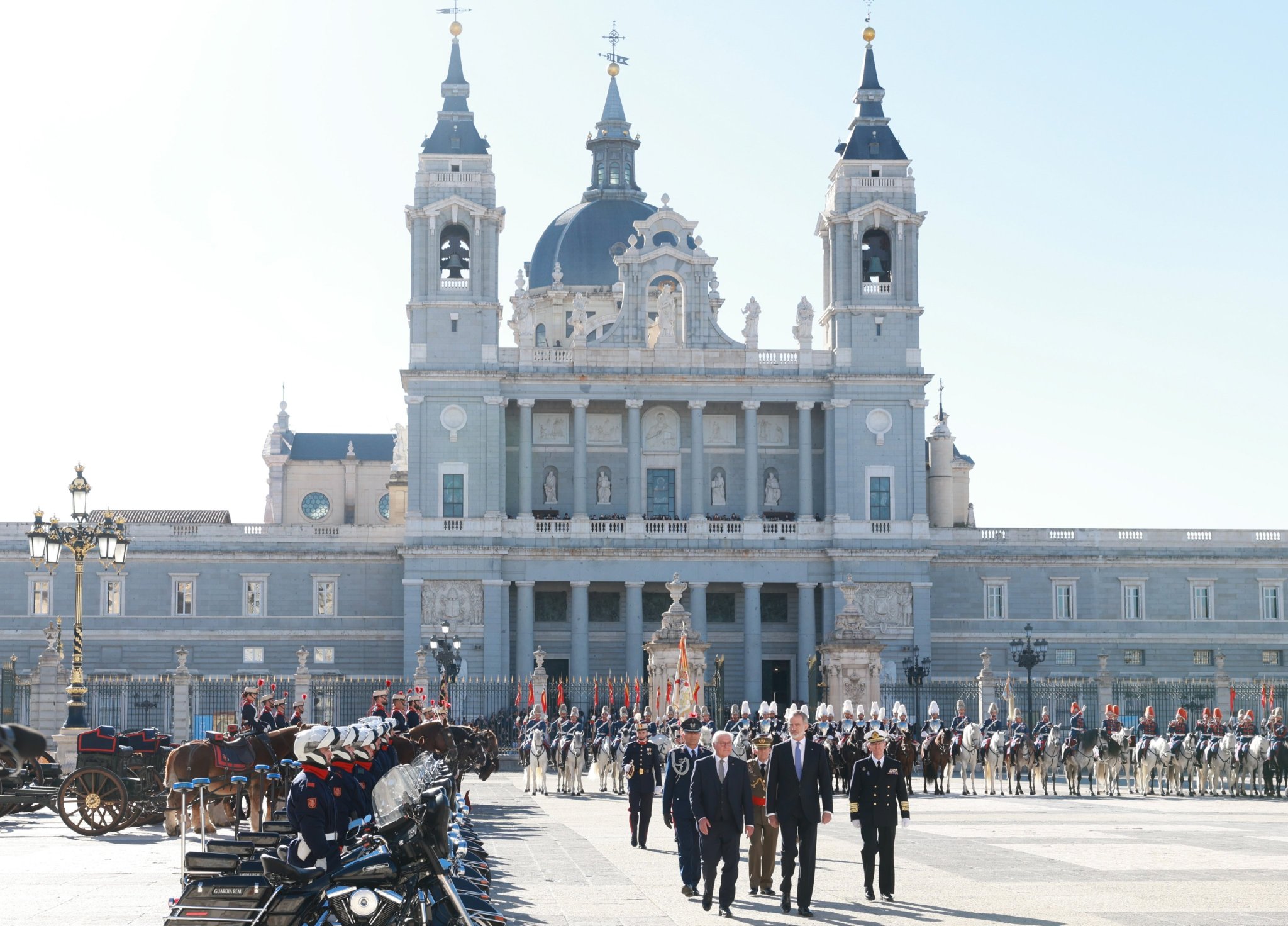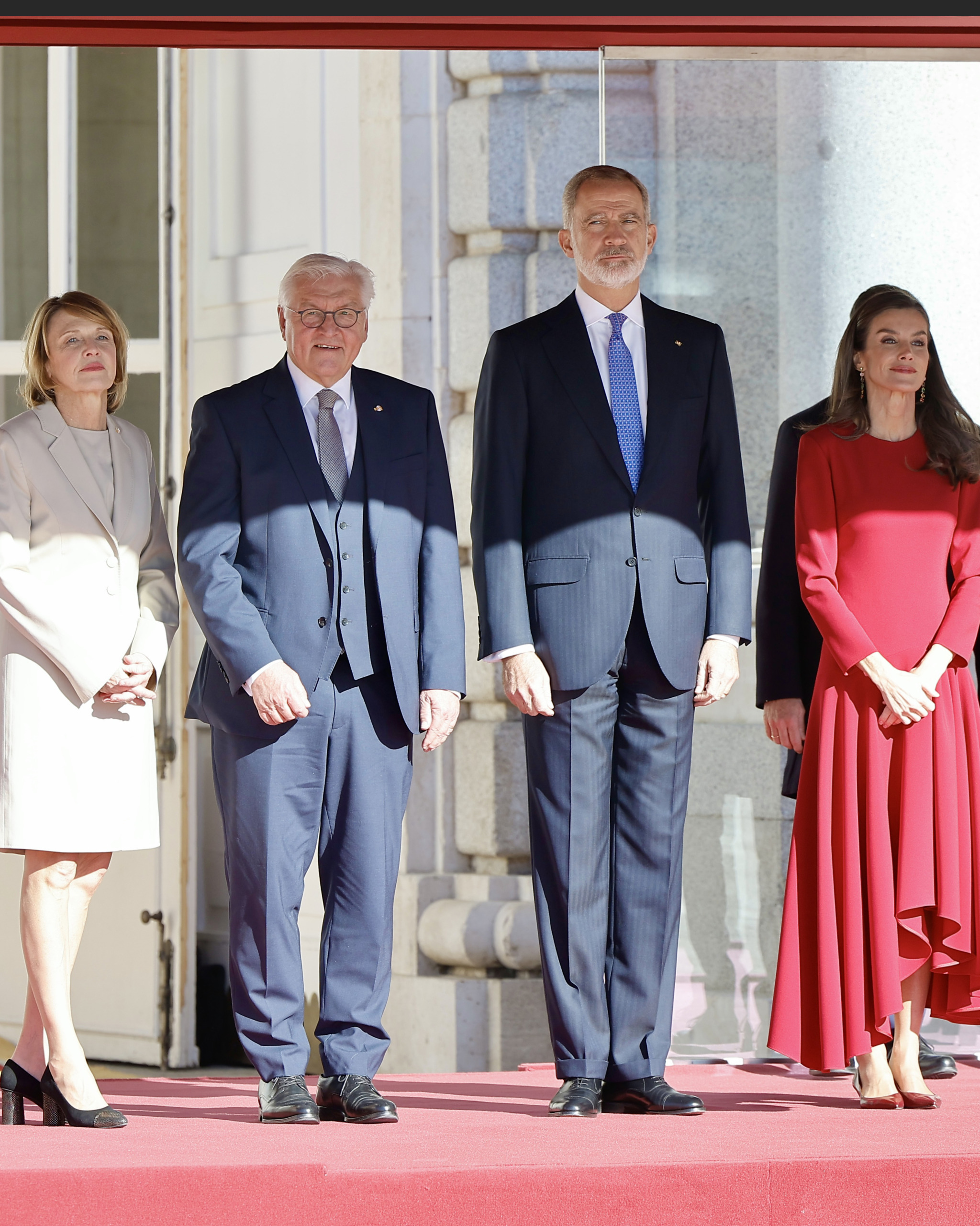 In the morning, King Felipe VI and Queen Letizia officially welcomed German President Frank-Walter Steinmeier and First Lady Elke Büdenbender in an Official Welcome Ceremony in the courtyard of the Royal Palace in Madrid. During the ceremony, the King and President reviewed a battalion of the Royal Guard and viewed a parade.