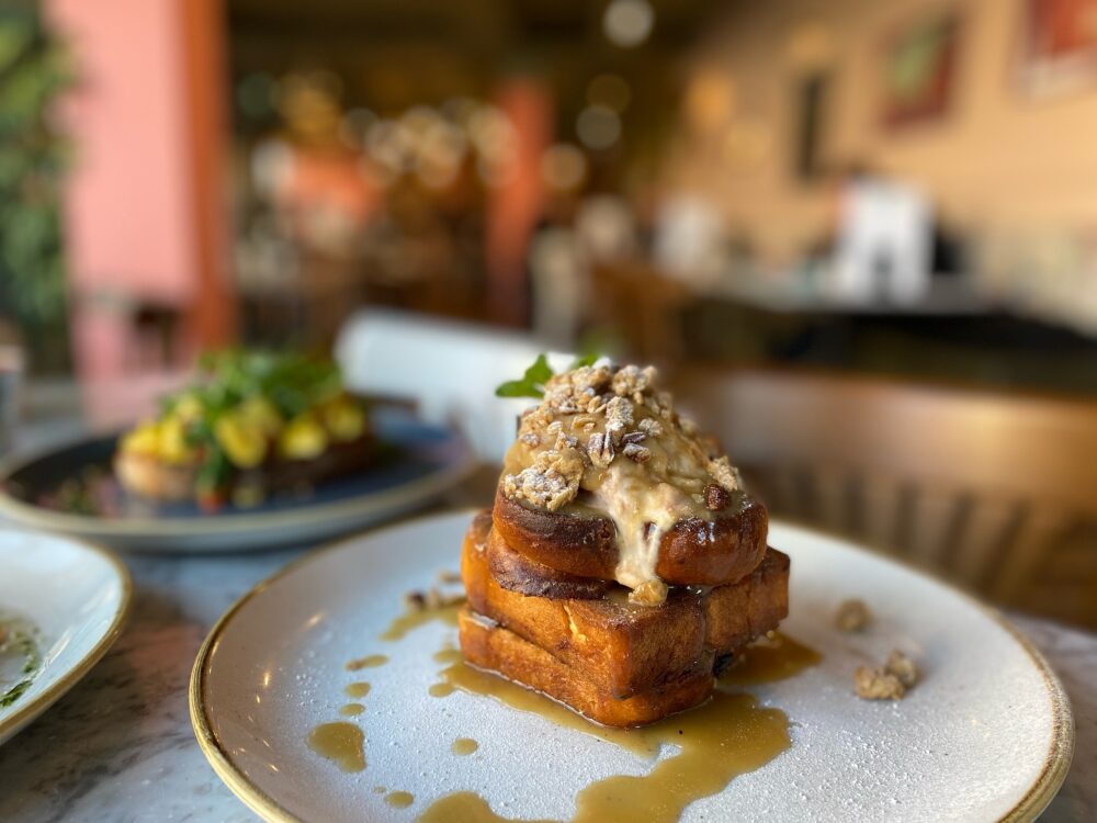 There’s a lot to love about LEAF’s breakfasts, served every day until 3pm. Go big with a Grand English or veggie and vegan version. Take your pick of eggs on sourdough – including classic Benny, Florentine, Royale – or if you’ve got a sweet tooth don’t miss French toast with banana mascarpone, pecan crumble and toffee sauce.