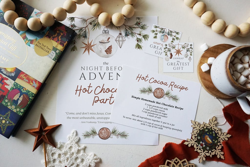 Everything (FREE!) you need for the Annual Tradition of a “Night Before Advent” Hot Chocolate Party, completely redesigned, all FREE GIFTS for our email list subscribers!