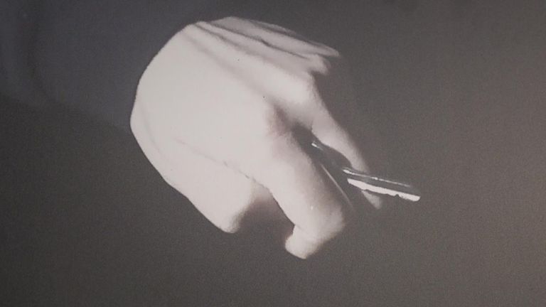 But instead of showcasing her singing, it shows a man approaching her repeatedly, coming closer and closer. He reaches out and touches her – wiping something wet on her arm.