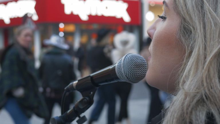 In the middle of Liverpool city centre, musician Ami Alex is showing me a TikTok she posted while busking on the street.