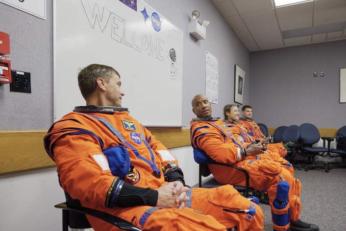 The four crew members, Victor Glover, Christina Koch, Jeremy Hansen and Wiseman, won’t be onboard the Orion capsule for the WDR, but will have some final emergency evacuation training at the pad.