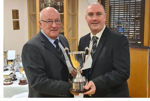 John Donald receiving the club champion trophy from Club Captain Dougie Wilson