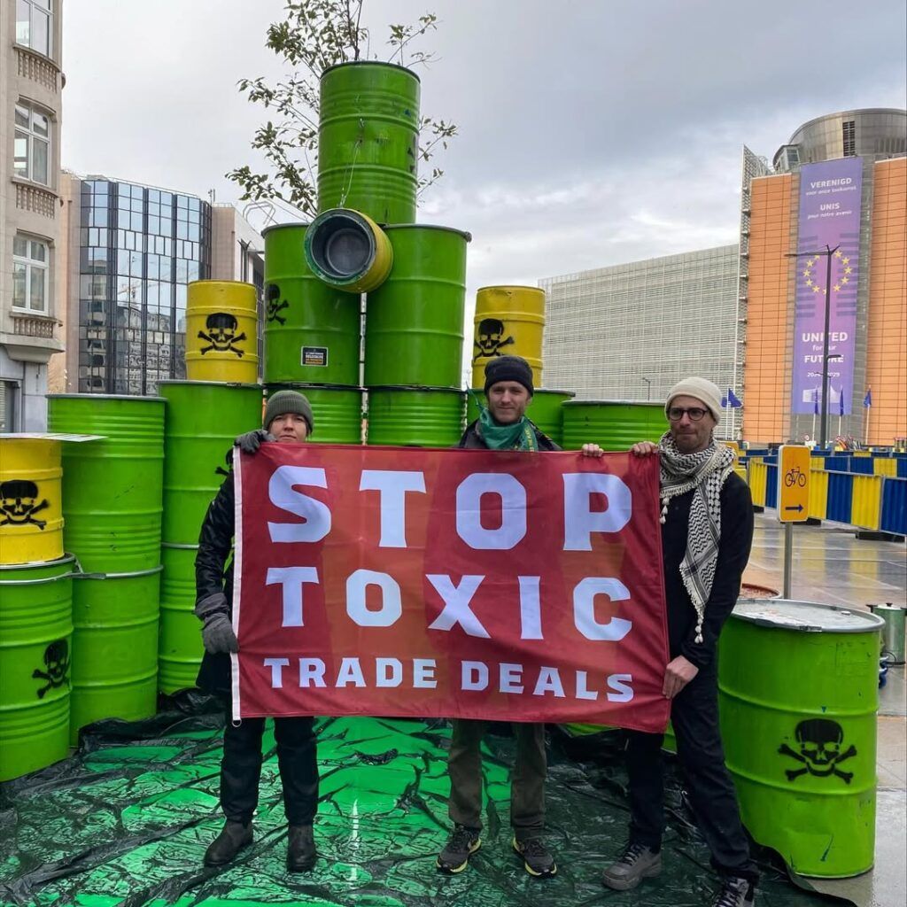 Over the past few weeks, the Toxic Trade Tour has travelled across Europe to highlight the widespread large opposition to the EU-Mercosur Agreement. The tour visited Austria, Germany, Poland, Spain, Portugal, France, the Netherlands and Belgium, and brought together civil society, NGOs, farmers and trade unions. Its final stop took place in Brussels on Monday, 24 November, at the heart of the European institutions, while trade ministers were discussing the Agreement. This meeting was likely the last formal exchange before the expected vote during the European Council on 18 and 19 December.