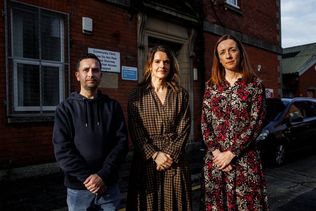 (left to right) Belfast Trust Addiction service user Michael Maine, Belfast Trust Consultant Addiction Psychiatrist Dr Joy Watson, and Head of Professional Services and Funding at Community Pharmacy NI, Katherine Kidd at Malone Place Clinic, Belfast.(Image: Liam McBurney/PA Wire )
