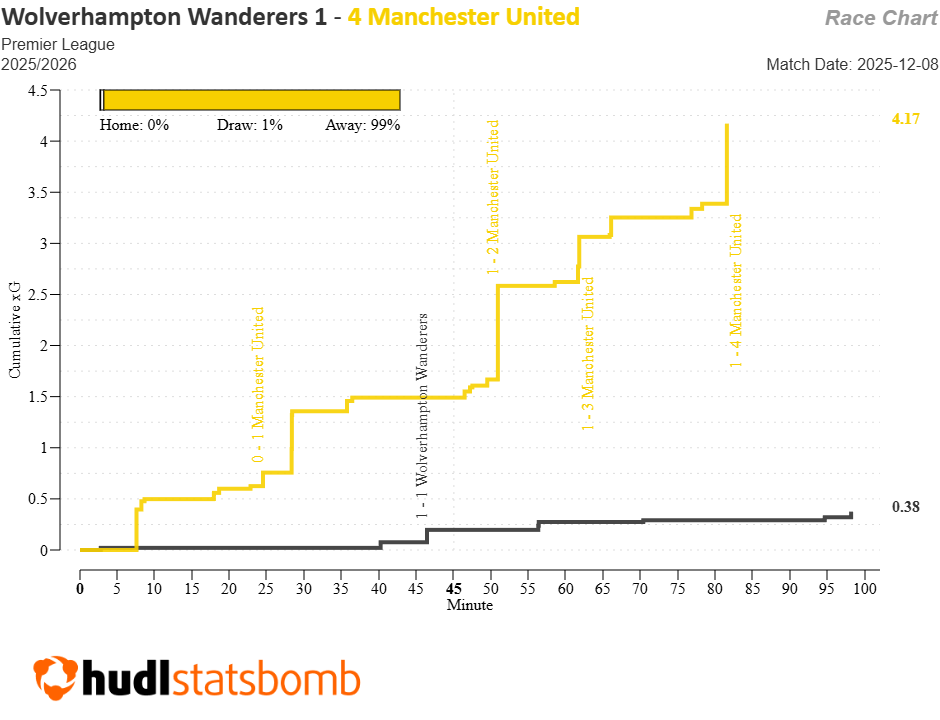 Whether you’re measuring by Opta or Statsbomb expected goals, this was the biggest ‘xG win’ of 2025/26 so far.