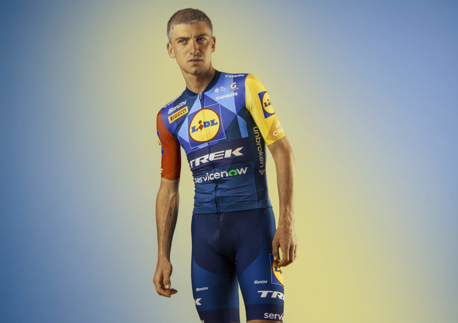 Lidl-Trek’s new kits also put a fresh spin on an instant classic, with cross-pattern gradients of the team’s iconic red, blue, and yellow color scheme. And get this: Replica kits are also available for purchase (you can shop here!), so now you too can stand out in your group ride.