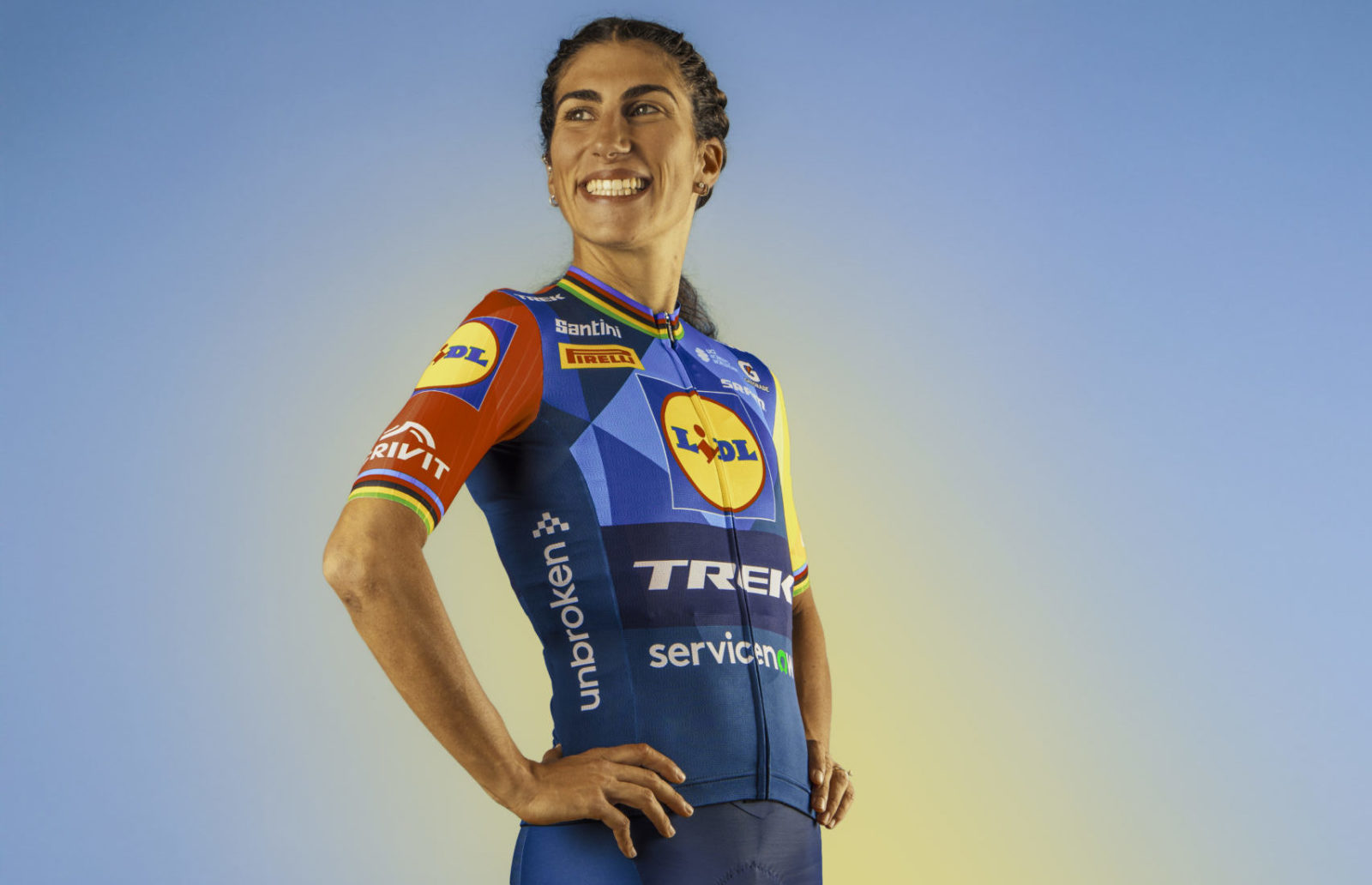 Elisa Balsamo already has her power pose down in the new kit!