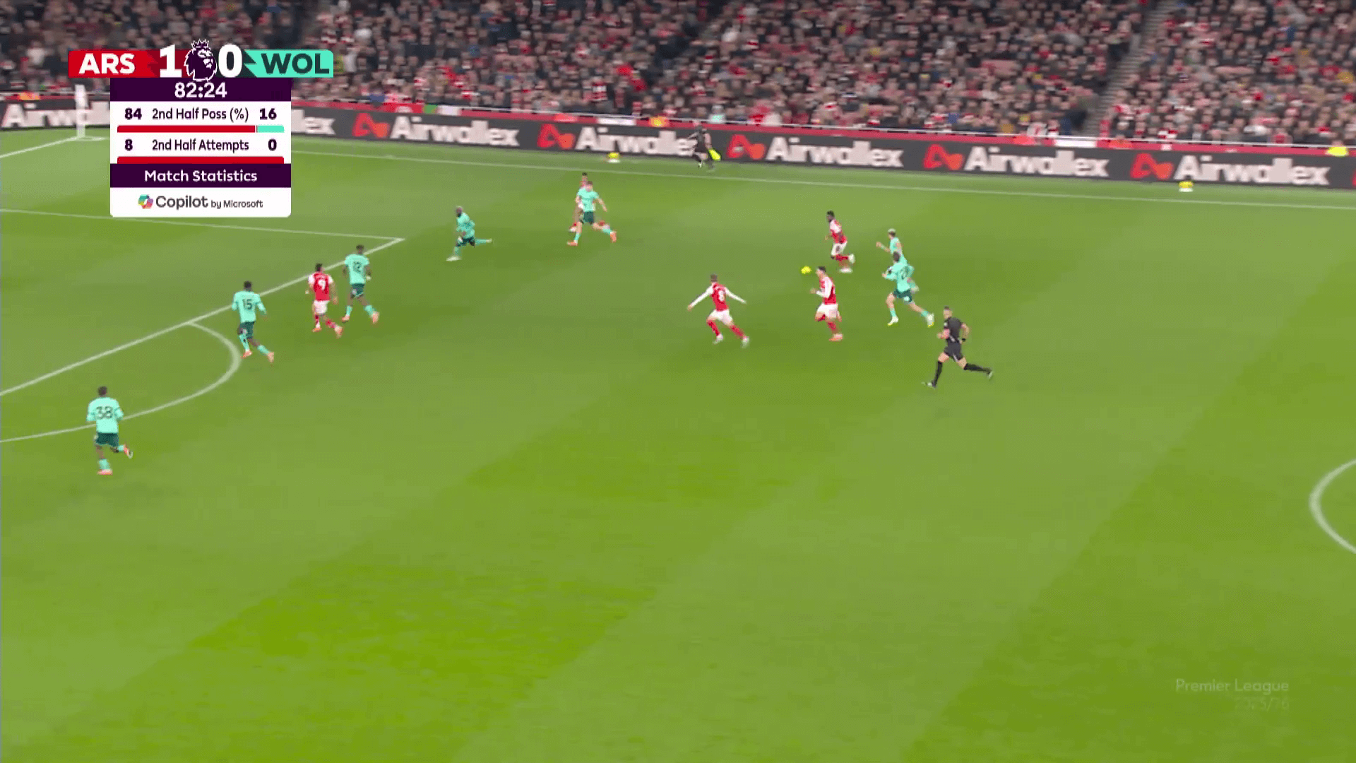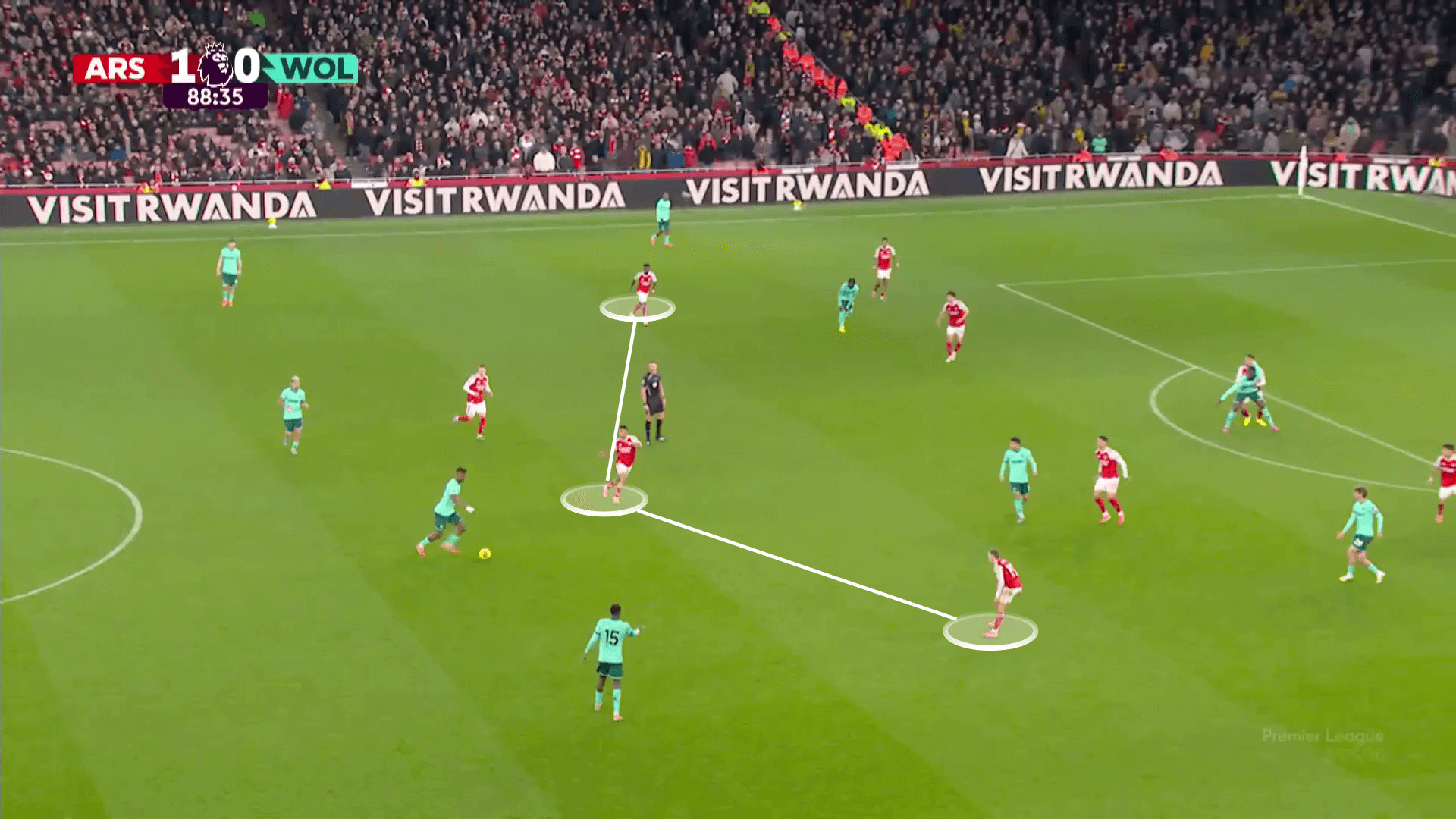 Odegaard, however, failed to find Jurrien Timber and Wolves were soon back in possession. Remarkably, that short passing sequence was as good as it got for Arsenal up until the Wolves goal more than five minutes later.