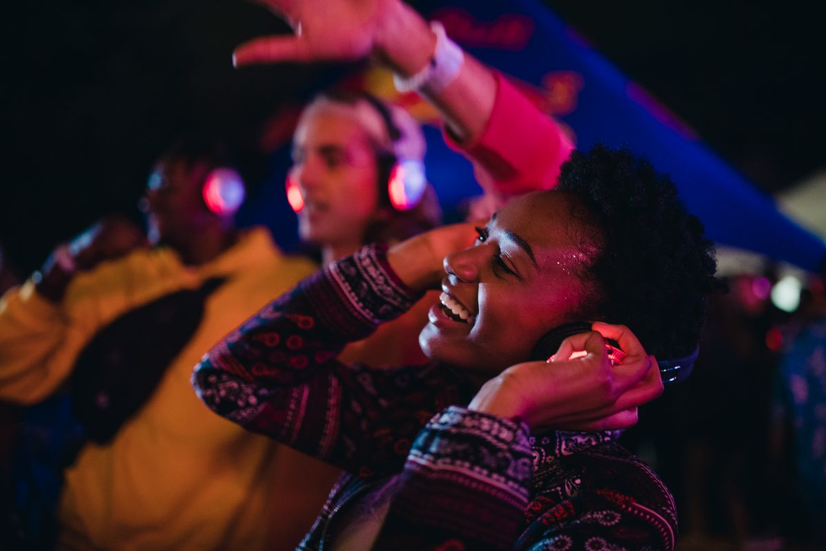 One young woman is dancing in a silent disco at a music festival.(Image: Getty Images)