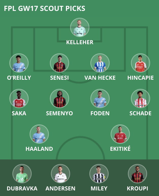 GAMEWEEK 17 SCOUT PICKSGOALKEEPERFPL pre-season: Kelleher + Schade injury updates, Henry starts