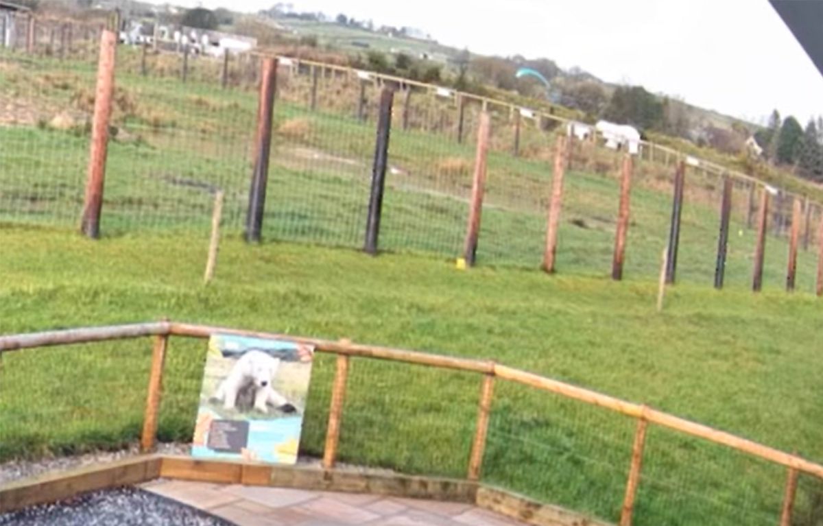Rushing towards the compound – armed with non-lethal firearms in case the worst happened – keepers were relieved to see the gliders had managed to divert their landing just to the right side of the bears’ border. And the moment was caught on CCTV with footage showing just how close they had come to the animals.