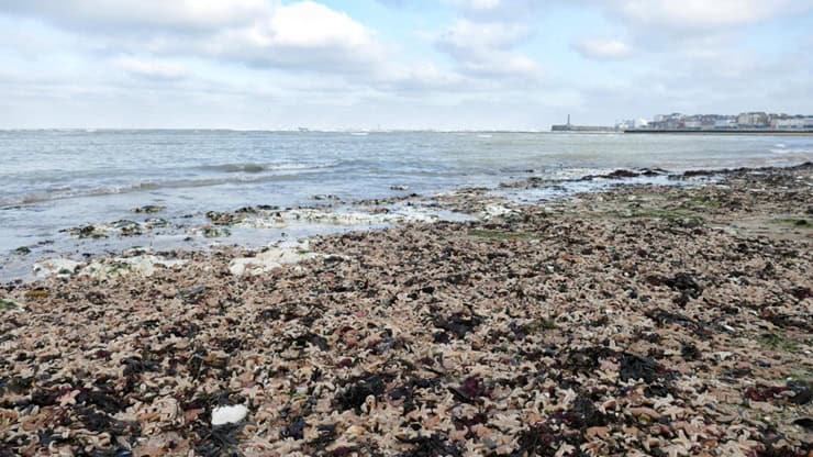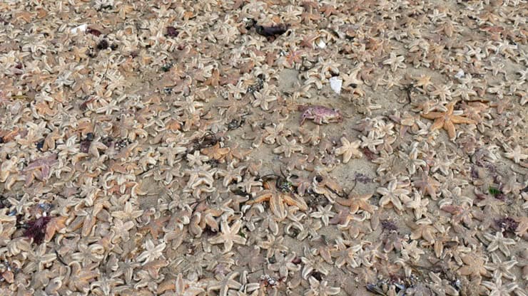 Starfish strandings are a natural occurrence that happen every year to some degree. The Natural History Museum says large strandings often occur after stormy weather when water currents become stronger and wash the starfish to the shore. Starfish live on the soft, sandy parts of the ocean floor and are easily picked up by currents and waves.