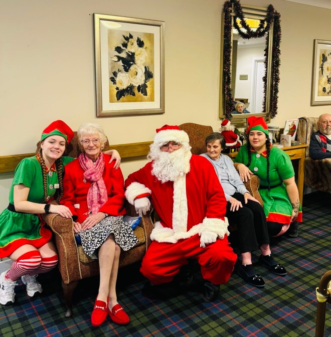 Diners were treated to a tasty Christmas lunch  in the home’s dining room. Guests had a chance to engage with residents, staff and visitors while enjoying their food, they even had a visit from the big man himself. The guests came from all over Edinburgh to enjoy the day with others and banish loneliness at Christmas time.